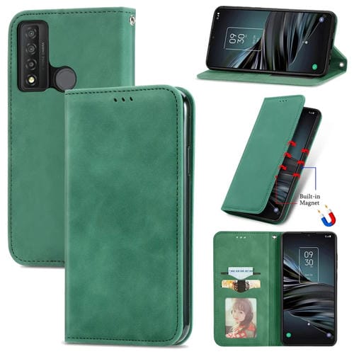 Funda para TCL 20 Xe Retro Piel Sensación Cuero Horizontal Magnético (Verde)