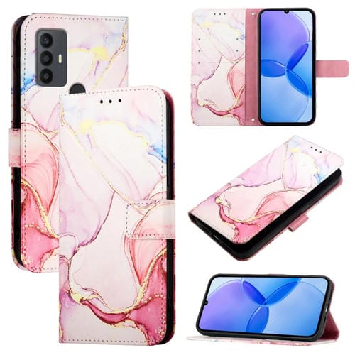 Funda de Cuero con Tapa para TCL 30 Se Pt003 con Patrón de Mármol (Oro Rosa)