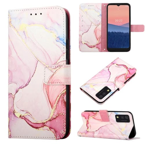 Funda de Teléfono TCL 30T T603Dl Pt003 con Tapa de Cuero y Patrón Mármol (Oro Rosa)