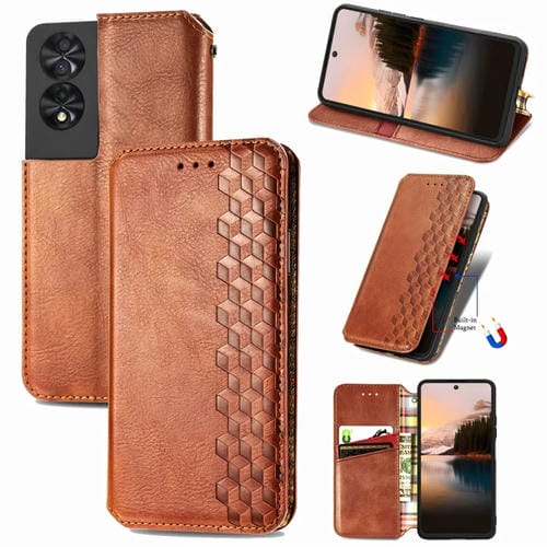Funda de Teléfono para TCL 40 Nxtpaper 5G Cubic Grid Cuero Magnético Prensado (Marrón)