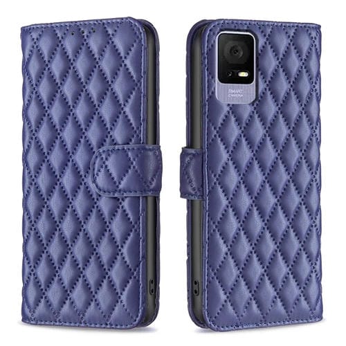 Funda de Cuero con Tapa para TCL 40 Se Diamond Lattice Wallet (Azul)