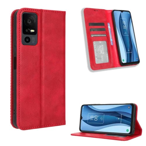 Funda para TCL 40 Xe 5G y 40 Nxtpaper 5G de Cuero con Textura Retro y Hebilla Magnética (Rojo)