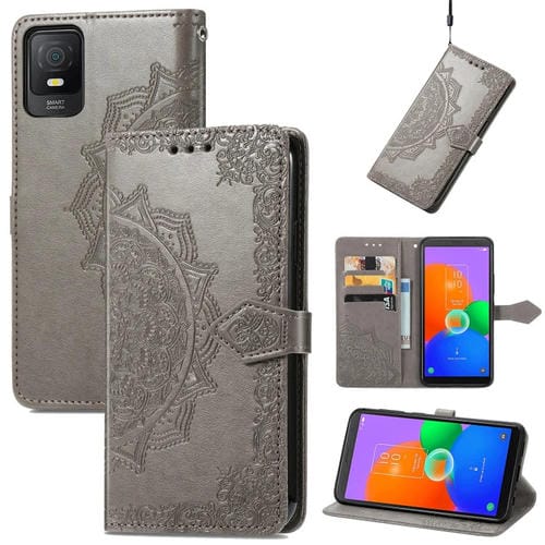 Funda de Cuero En Relieve Mandala Flower para TCL 403 (Gris)