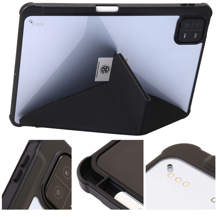 Para Xiaomi Pad 6 Pro Clear Acrylic Deformation Leather Tablet Case (Negro)
