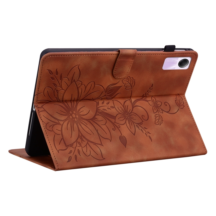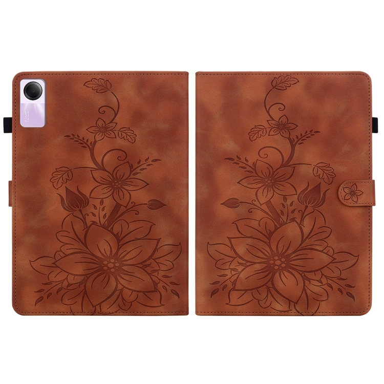 Para Xiaomi Redmi Pad Se Lily Funda para Tableta de Cuero En Relieve (Marrón)