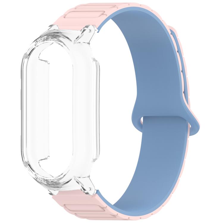 Para Xiaomi Smart Band 9/9 NFC Watch Case Correa de reloj de silicona magnética en forma de I integrada (rosa azul + transparente)