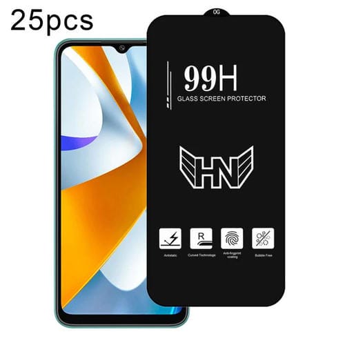Película de Vidrio Templado de Pantalla Completa de Arco Grande de Aluminio Alto para Xiaomi Poco C40, 25 Piezas