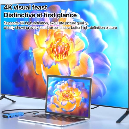 El Adaptador Concentrador USB-C YCE V261 13 en 1 con IA (Azul) es una solución integral para usuarios que requieren múltiples conexiones desde un solo puerto USB-C. Diseñado para entornos de trabajo exigentes, este hub permite conectar simultáneamente hasta 13 dispositivos, incluyendo periféricos USB, pantallas HDMI y VGA, tarjetas SD/TF, red Ethernet y audio. Compatible con ordenadores portátiles, tablets y otros dispositivos con puerto USB-C, este adaptador ofrece una experiencia de conectividad avanzada con soporte para transferencia de datos de alta velocidad, carga rápida y control inteligente mediante asistente de IA integrado. Su carcasa de aleación de aluminio y cable trenzado garantizan durabilidad y resistencia en el uso diario.