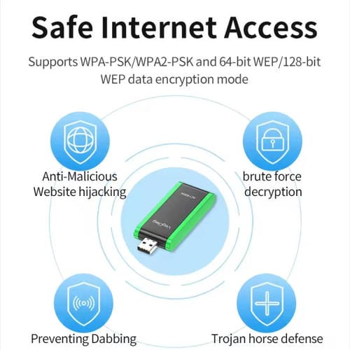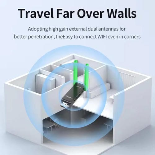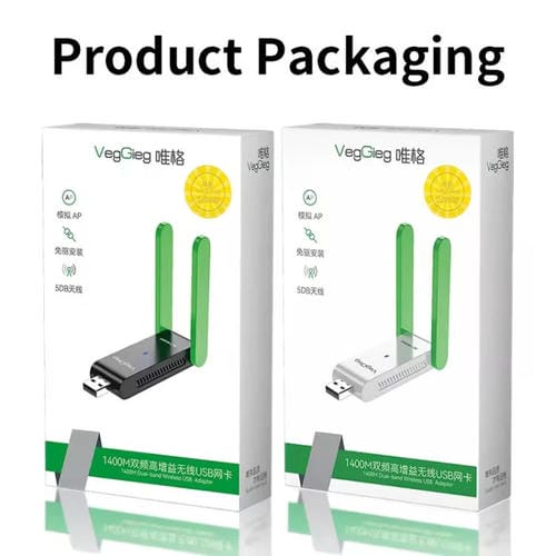 1. Tarjeta de red inalámbrica USB de doble banda de 1400 Mbps sin controlador: Receptor Wi-Fi listo para usar, compatible con las bandas duales de 2,4 GHz/5 GHz, equipado con antenas duales de 5 dBi, lo que garantiza la transmisión de baja latencia de videos y juegos de alta definición.