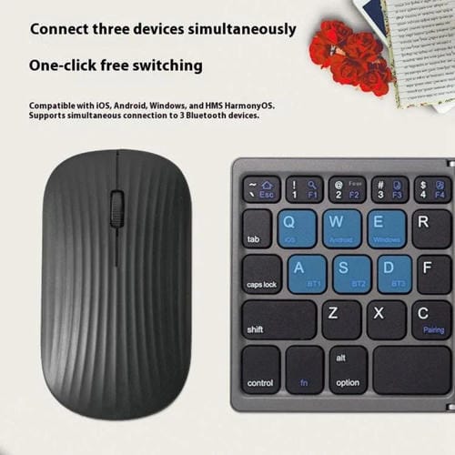 1. Diseño plegable: Teclado plegable triple con cierre magnético para un cierre seguro y portabilidad compacta.
