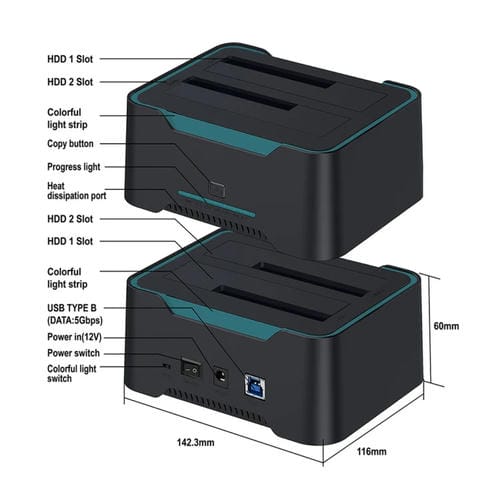 • 1x Base de Expansión Estación de Acoplamiento Onten UHD6 Doble Bahía para Disco Duro Externo