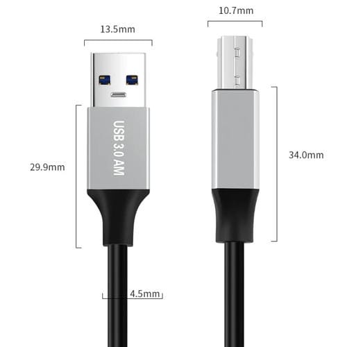 El Cable Adaptador de transmisión de datos USB 3.0 Macho a USB-B Cuadrado de 1 metro es un componente diseñado para facilitar la Conexión y transferencia de datos entre impresoras y otros dispositivos con interfaz USB-B. Compatible con la mayoría de equipos que utilizan el Conector USB-B cuadrado, este Cable permite una comunicación eficiente y rápida gracias a su tecnología USB 3.0, que soporta altas velocidades de transferencia. Su uso principal es conectar impresoras, escáneres y otros periféricos a ordenadores o dispositivos host, garantizando una transmisión estable y sin interrupciones. Además, su diseño plug and play elimina la necesidad de instalar controladores, facilitando su uso inmediato.
