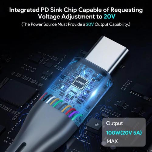 - Soporta una potencia máxima de salida de 100 W (20 V 5 A); incluye junta impermeable para uso en Exteriores; longitud del Cable: aproximadamente 2 metros