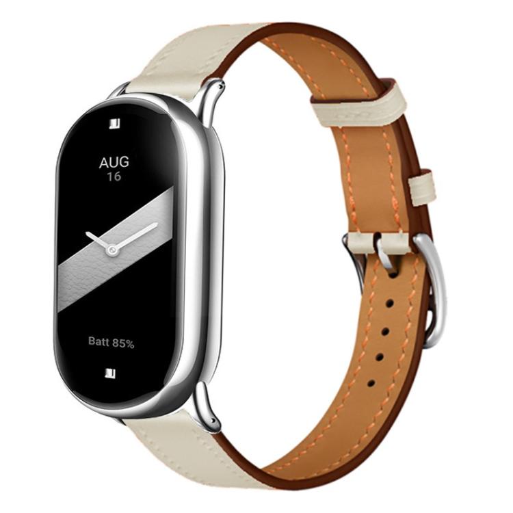 Correa de cuero con hebilla plateada fina para Xiaomi Smart Band 10/9/8 (blanco cremoso)