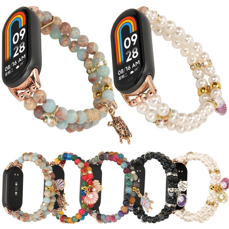 Correa de reloj con cadena de cuentas de doble fila para Xiaomi Smart Band 10/9/8 (negra)
