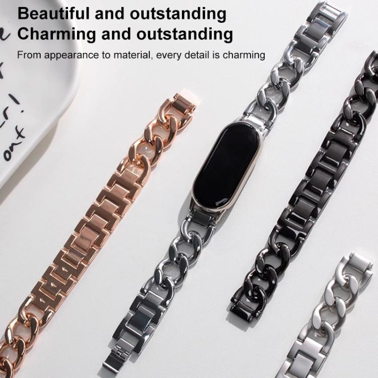 Correa de reloj de acero inoxidable con cadena vaquera de una sola fila xDfind para Xiaomi Smart Band 10/9/8 (oro rosa)
