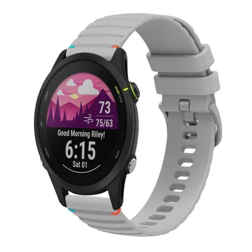 Correa de Silicona para Reloj Garmin Forerunner 255 de 22mm con Puntadas Onduladas y Puntos (Gris)