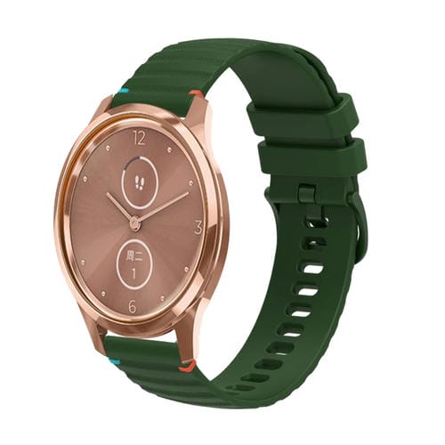 Correa de Silicona para Reloj Garmin Move Luxe 20mm con Puntadas Onduladas y Puntos (Verde Militar)
