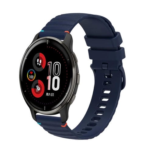 Correa de Silicona con Puntadas Onduladas y Puntos para Reloj Garmin Venu 2 Plus 20mm (Azul Marino)