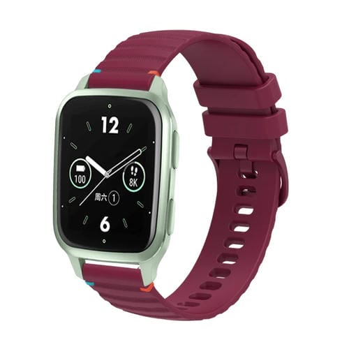 Correa de Silicona con Puntadas Onduladas y Puntos para Reloj Garmin Venu Sq2 de 20mm (Rojo Vino)