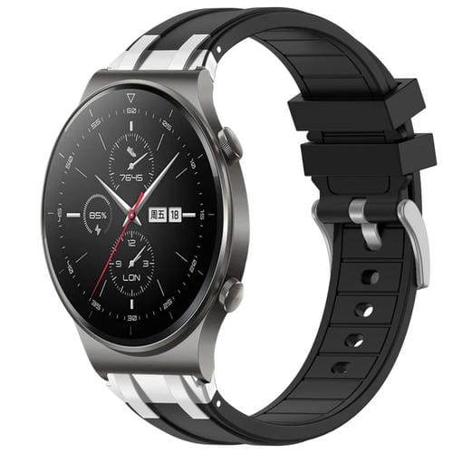 Huawei Watch GT2 Pro 22mm Silicone Watch Band Strap with Quick Release Silver Buckle (Black)