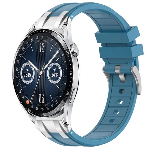 For Huawei Watch GT3 46mm 22mm Silicone Watch Band Strap with Quick Release Silver Buckle (Navy Blue)