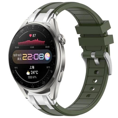 Huawei Watch3 Pro 22mm Silicone Watch Band Strap with Quick Release Silver Buckle (Olive Green)