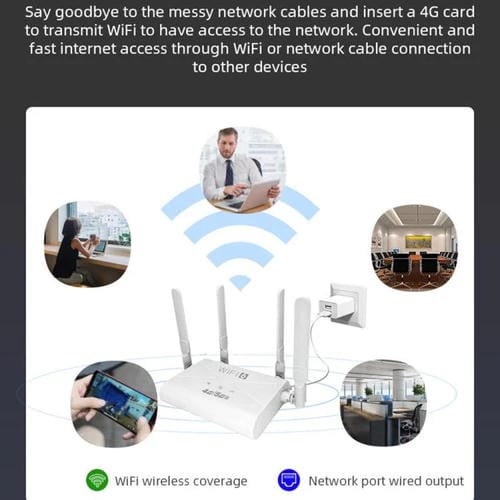3. Fácil configuración: Simplemente inserte una tarjeta SIM estándar para convertir 4G LTE en un punto de acceso Wi-Fi.Requiere una configuración mínima para acceder a internet al instante en todos los dispositivos, apto para usuarios de todos los niveles técnicos.4. Compatibilidad con múltiples dispositivos: Conecte hasta 32 dispositivos simultáneamente, incluyendo smartphones, tablets y PC, con una cobertura máxima de 300 metros cuadrados.