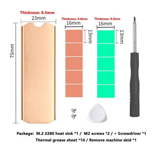 - 1x Disipador de Calor SSD de Cobre Puro Finalcool M.2 2280 para Consolas de Juegos, Portátiles y Minihosts