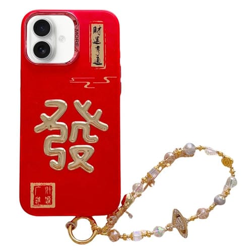 Estuche para Teléfono Get Rich iPhone 16 Plus Estampado Dorado 3D Imd Cadena de Cristal