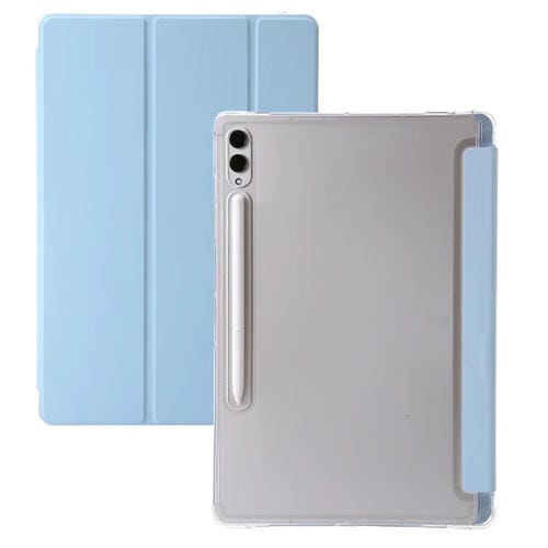 Funda de Cuero Acrílico Transparente 3 Pliegues para Tablet Samsung Galaxy Tab S10 Ultra (Azul Hielo)