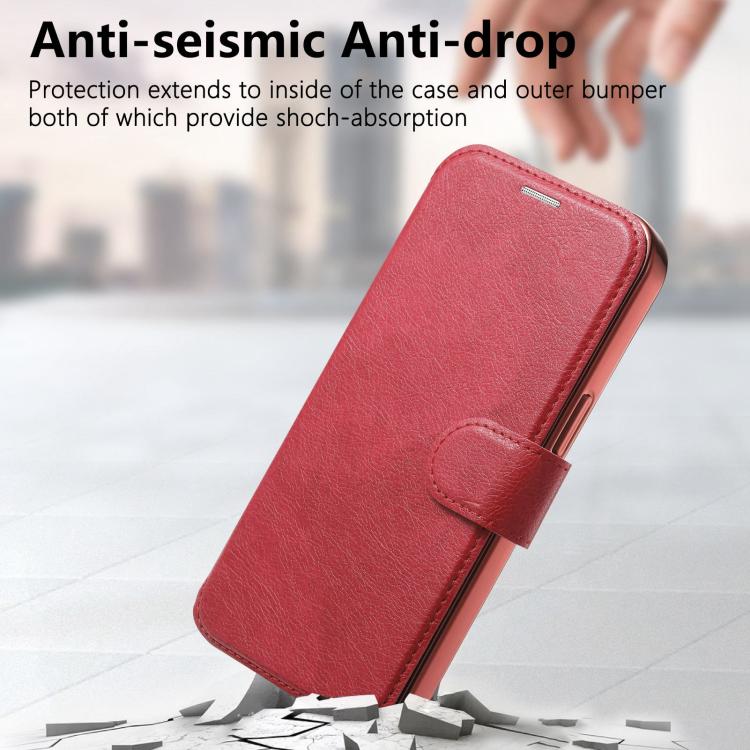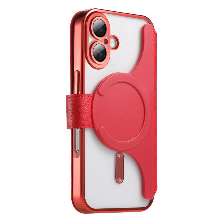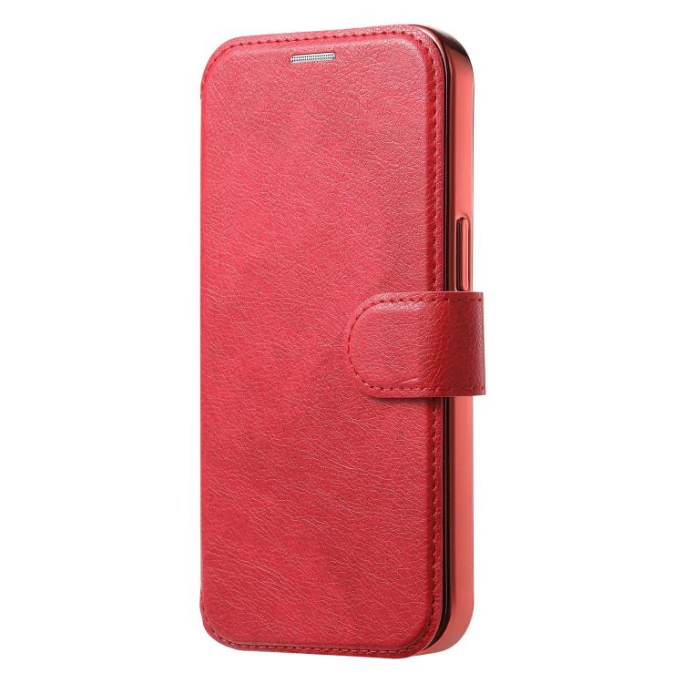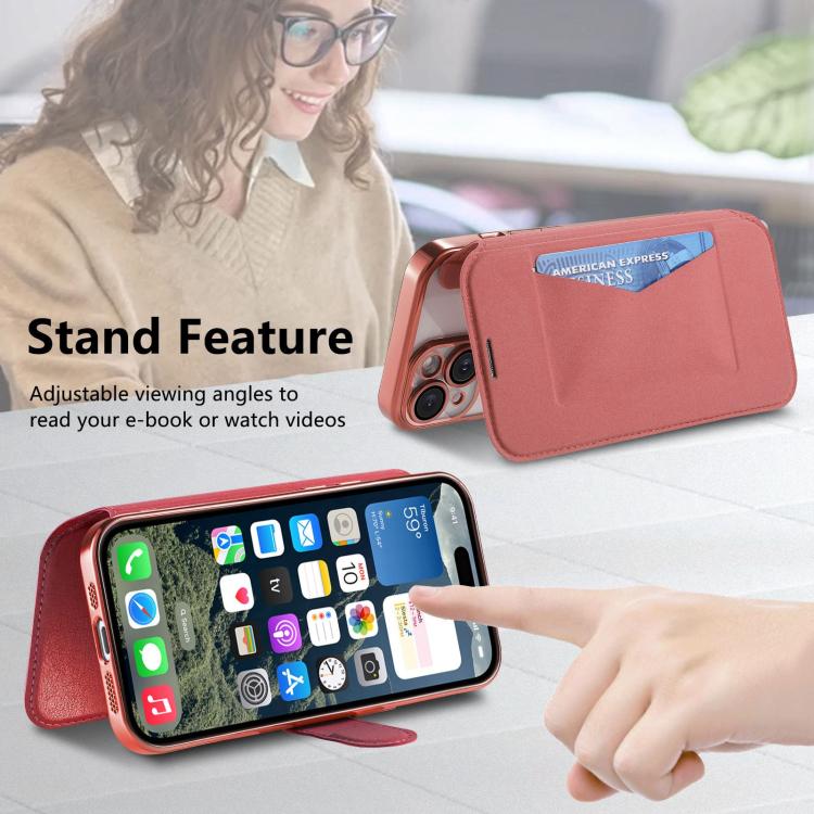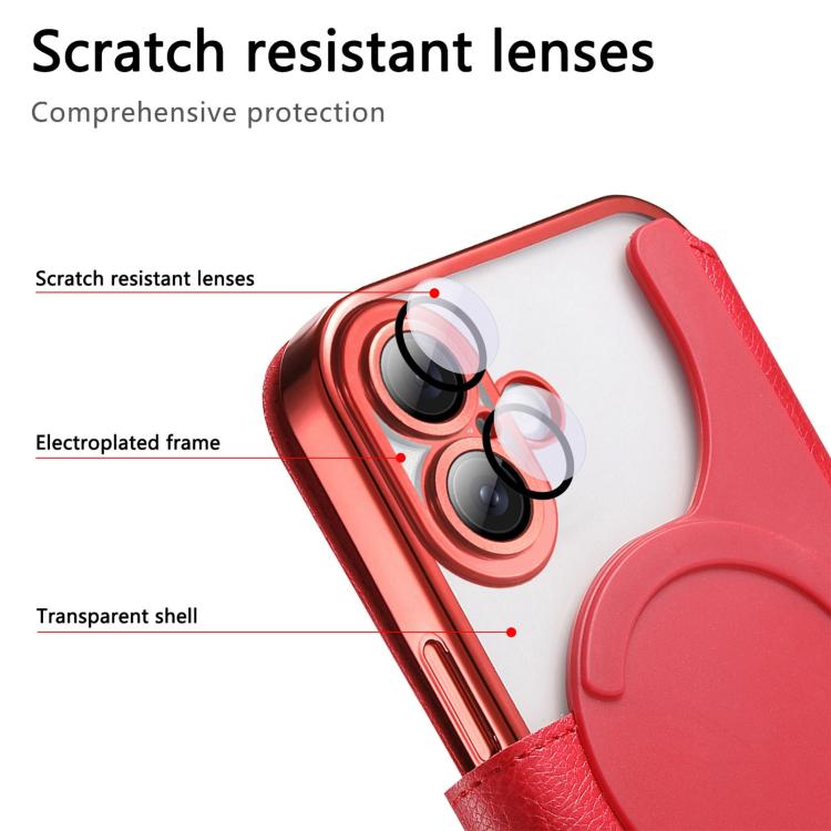 Funda de cuero antirrobo MagSafe RFID galvanizada divisible para iPhone 17 con protector de lente (rojo)
