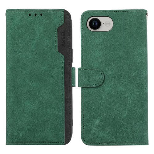 Funda de Cuero Abeel para iPhone 16E Rfid Magnética Diseño Bloques de Color (Verde y Negro)