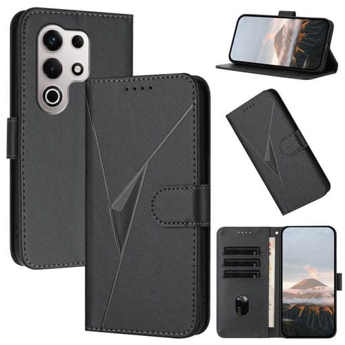 Funda de Cuero Itel S25 Ultra con Cierre de Hebilla y Diseño Triangular (Negro)
