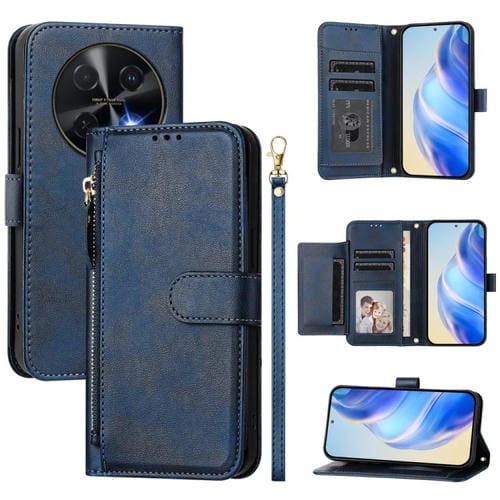 Funda de Cuero con Cremallera y Ranuras para Tarjetas Huawei Nova 12I 4G (Azul)
