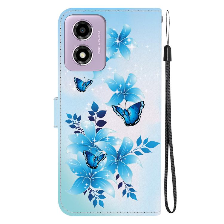 Funda de Cuero para Motorola Moto G04S/E14 con Dibujo de Colores y Textura de Cristal (Mariposas Azules)