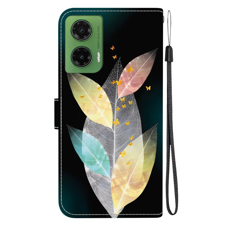 Funda de Cuero para Motorola Moto G35 con Dibujo de Hojas de Colores y Textura de Cristal