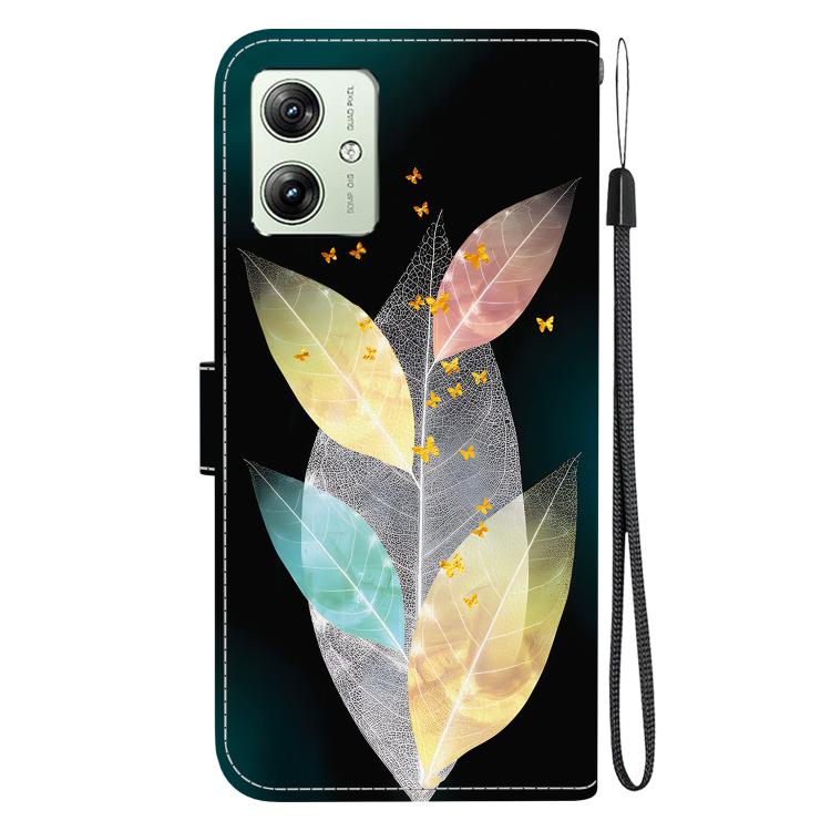 Funda de Cuero para Motorola Moto G54 con Dibujo y Textura de Cristal (Hojas de Colores)