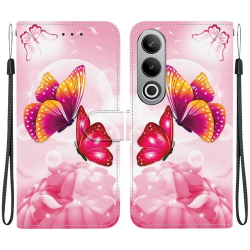 Funda de Cuero para OnePlus Nord Ce4 5G con Dibujo de Colores y Textura de Cristal (Mariposas Rosas)