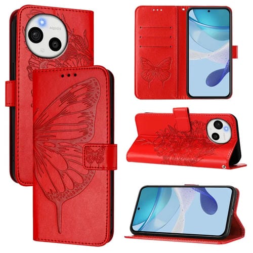 Funda de Cuero para Sharp Aquos Sense9 Plus con Diseño de Mariposa en Relieve (Roja)