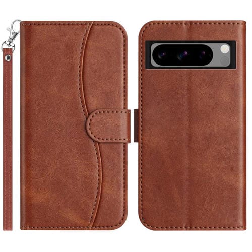 Funda de Cuero con Doble Pliegue en Forma de S para Google Pixel 8 Pro (Café)