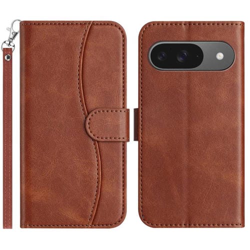 Funda de Cuero con Doble Pliegue en Forma de S para Google Pixel 9/9 Pro (Café)