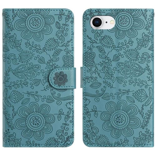 Funda de Cuero iPhone 16E Estampado Floral En Relieve (Verde Oscuro)