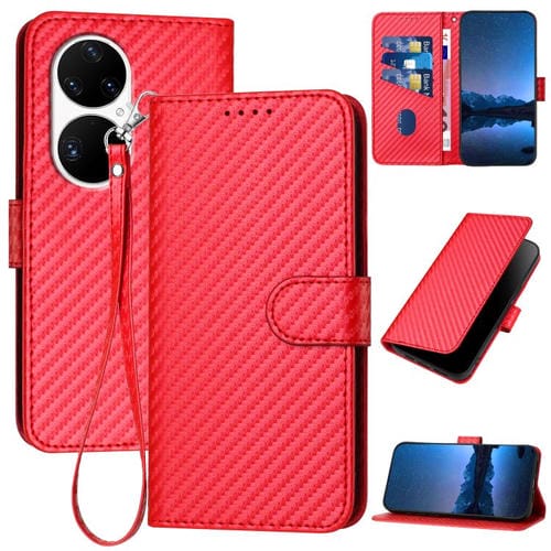 Funda de Cuero con Hebilla de Fibra de Carbono para Huawei P50 Pro Yx0070 con Cordón (Rojo)