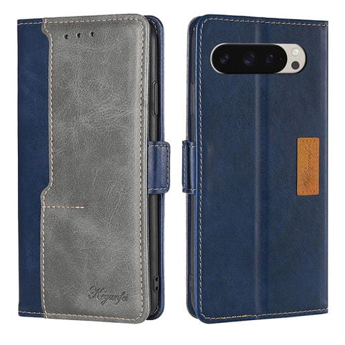 Funda de Cuero con Hebilla Lateral para Google Pixel 9 (Azul y Gris)