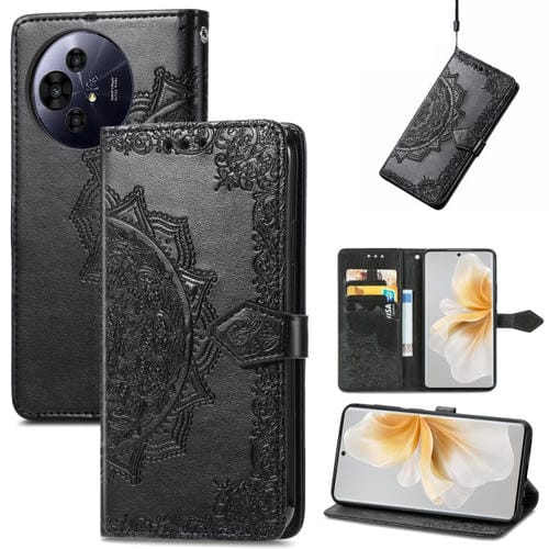 Funda de Cuero Nxtpaper con Relieve Flor de Mandala para TCL 50 Pro (Negro)