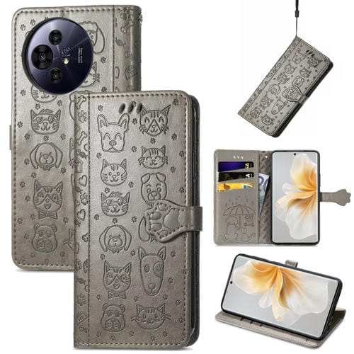 Funda de Cuero Nxtpaper con Relieve de Gato y Perro para TCL 50 Pro (Gris)