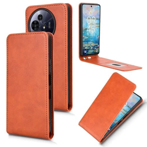 Funda de Cuero con Tapa Vertical Magnética para Teléfono TCL 50 Nxtpaper 5G (Marrón)