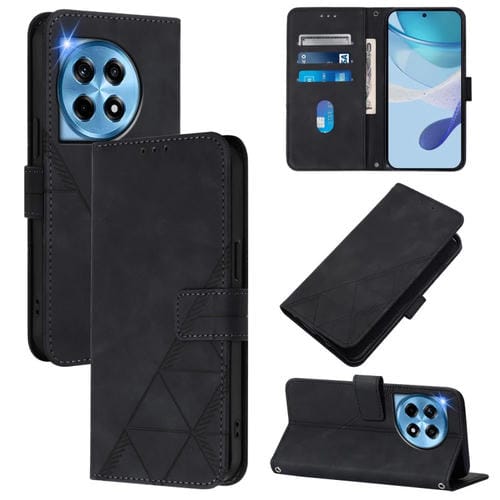 Funda de Cuero con Tapa y Relieve 3D para OnePlus 12 5G Global Crossbody (Negra)