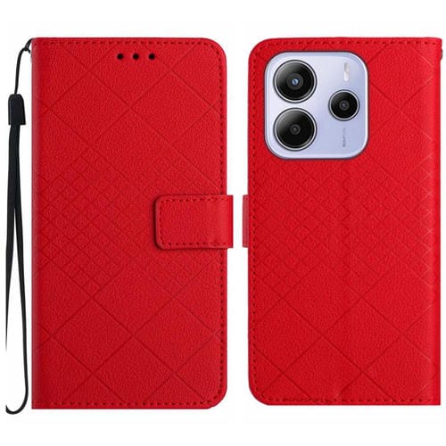 Funda de Cuero con Textura de Cuadrícula Rómbica para Redmi Note 14 4G (163,25mm) (Rojo)